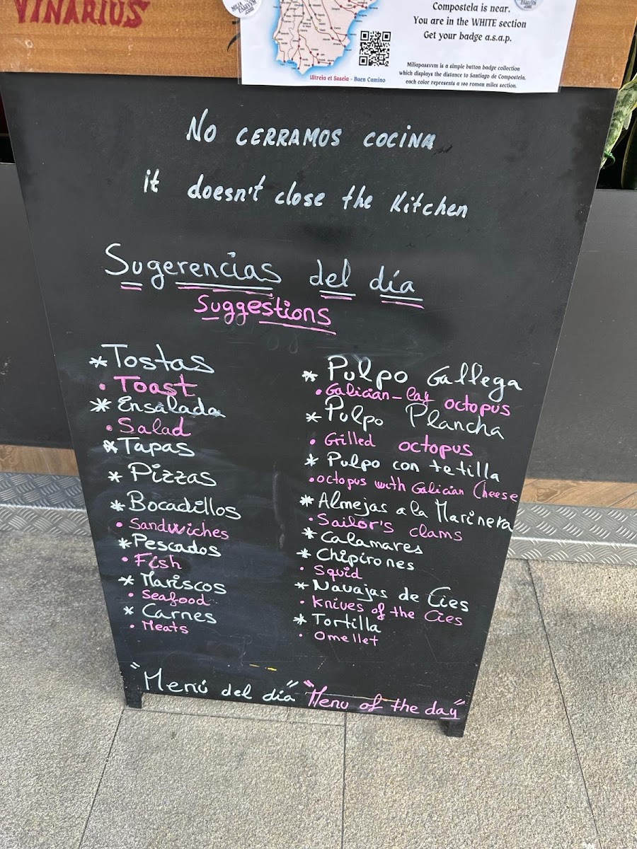 In addition to food, the menu provides a range of beverages including coffee, sangria, alcoholic and non-alcoholic cocktails, as well as local beers such as Estrella Galicia. Light bites like tostadas with olive oil and tomato can be enjoyed alongside these drinks.