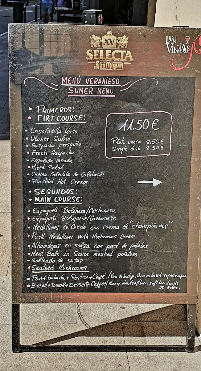 The menu at Don Vinarius features a variety of traditional tapas dishes alongside other regional and international options. Visitors can find a selection of small plates designed for sharing, such as seafood preparations and vegetable sautés, as well as larger dishes including hamburgers and pasta. The food offerings include items like black risotto with octopus, Salteado de Setas (mushroom sauté), Pizza Funghi Al Forno, and empanadas filled with tuna.